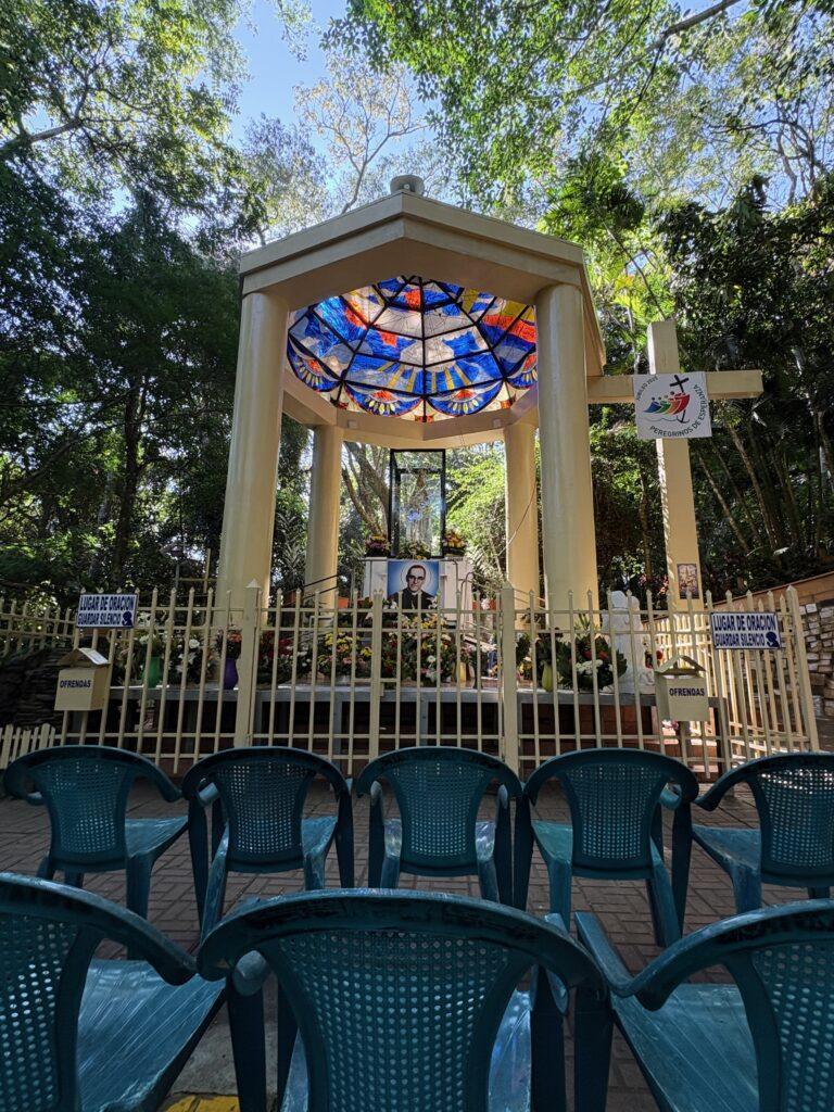 I’m sitting here enjoying a cup of coffee and eating pupusas for dinner. It’s raining, which is surprising because it’s the dry season. Many who grew up here tell me the weather patterns have changed a lot since they were younger. The rainy season was supposed to end by the end October, but although the frequency and intensity of rain decreased significantly, it still rained into November and here we are in January with a rainy evening. This morning was clear though and my wife and I finally went hiking as we had planned to do for a while.  Our goal is to climb the Santa Ana volcano in the National Park there (Parque Nacional de los Volcanes), but since we have not hiked recently, we are getting back into the practice so we can do this together. Today we started small with a 1-hour hike in a park on a hill within Cojutepeque called Cerro de las Pavas, which is Spanish for Hill of the Turkeys. An interpretive sign at the park said that Cojutepeque is a Nawat place name. Nawat is an endangered language that was the language of the Pipil indigenous people who populated central and western El Salvador at the time of the Spanish conquest. The place names in central El Salvador are either Spanish (like “El Salvador”) or they’re from Nawat. Nawat is closely related to the Aztec language family because the Pipil migrated from what is today central Mexico and the Gulf Coast region 400 years before the Spanish arrived.  The Pipil displaced earlier Mayan inhabitants who remained in the greater region, but not as much in what became El Salvador. The word “Cojutepeque” (the place we visited today to go hiking) means “Hill of the Turkeys” with the ending “-tepeque” meaning hill or mountain. Other Savaldoran place names are based on Nawat words, such as “-tlan” which means “place of” and “-tenango” which means “place of walls or fortifications”. Examples include “Cuscatlán” and “Chalatenago”.  The Cerro de las Pavas park has trails and some various comedors located almost in the park, which are called “Merenderos”. A comedor is a diner of sorts, but is really just a small, often unlicensed business where people cook familiar local foods for sale.  Many are bigger and more like a restaurant as we would know it in the US.  A merendero is comedor in an outdoor setting, so when we were hiking we found people had set up tables and were cooking basically in the forest and that is what merenderos are.  There is also a Catholic shrine in the forest called La Gruta de la Virgen de Fatima.  The shrine is dedicated to the Virgin Mary, but also to a series of events that are recognized by the Catholic Church as having occurred in 1917 in Portugal related to three children being visited by the Virgin.  The site in Cojutepeque was chosen in 1949 and has a statue (i.e. image) of the Virgin Mary that is from Spain.  An original was at the site, carved in Portugal, but was damaged in an earthquake and the one from Spain is a replacement. Pilgrimages take place there in May and October and the site was declared historic by the EL Salvador legislature. If you look at the photo below, you’ll see a photo of a man on the shrine. The man is Monseñor Oscar Romero who was the Archbishop of El Salvador and was assassinated in 1980 at the beginning of the Salvadoran civil war.