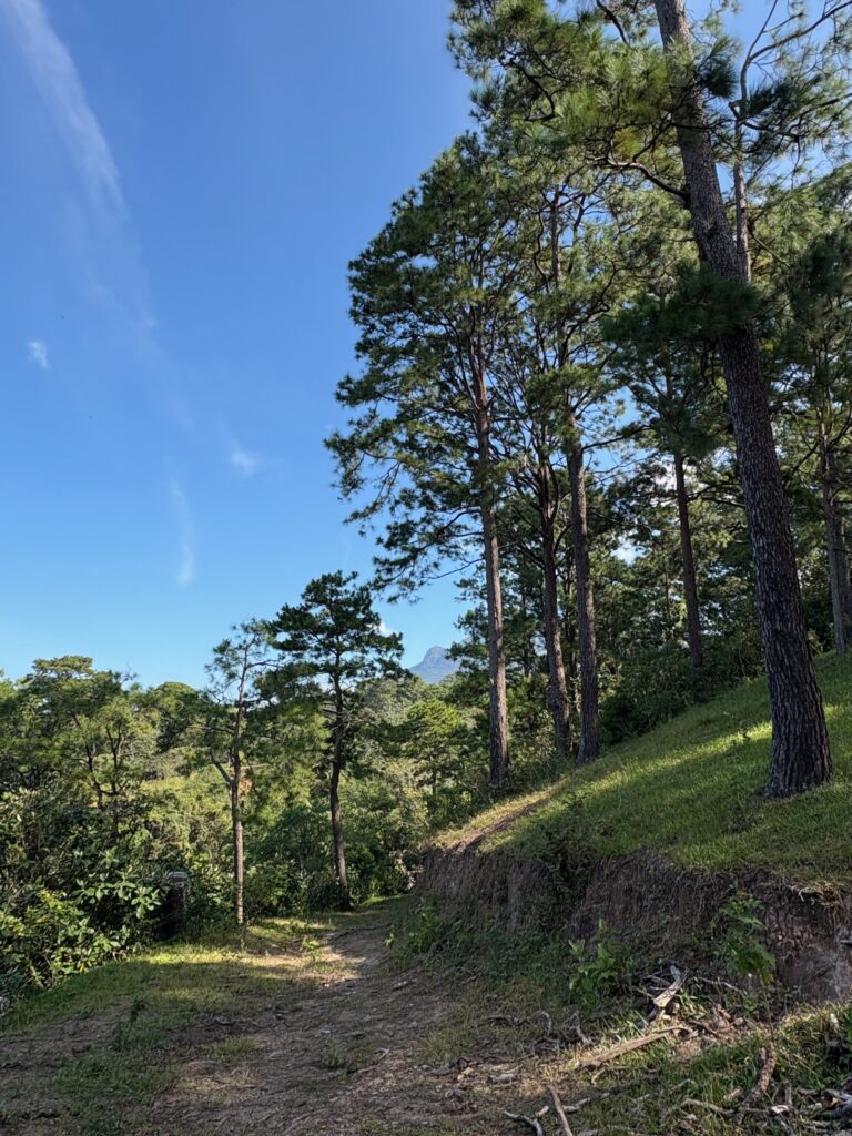 This weekend, my wife and I went to a hotel in San Ignacio, which is in the Chalatenango Department in the far northern part of El Salvador near the Honduras and Guatemalan borders. The village is about 3,300 feet above sea level and due to the high elevation is a little cooler. We arrived somewhat late Saturday night and mostly rested and then enjoyed dinner. For dinner I had wild boar at the hotel restaurant! This morning we went hiking, which is something we enjoy but have not had a chance to do lately. The grounds of the hotel are quite extensive, including a river which we were able to hike to. After our hike we went back to the hotel for a rest before going to the nearby village of La Palma, which is where the peace treaty was signed at the end of the Salvadoran civil war in 1992. We visited small craft booths and walked around the village before driving to a nearby restaurant for lunch. La Palma is an excellent place to buy local crafts and enjoy the mountains.