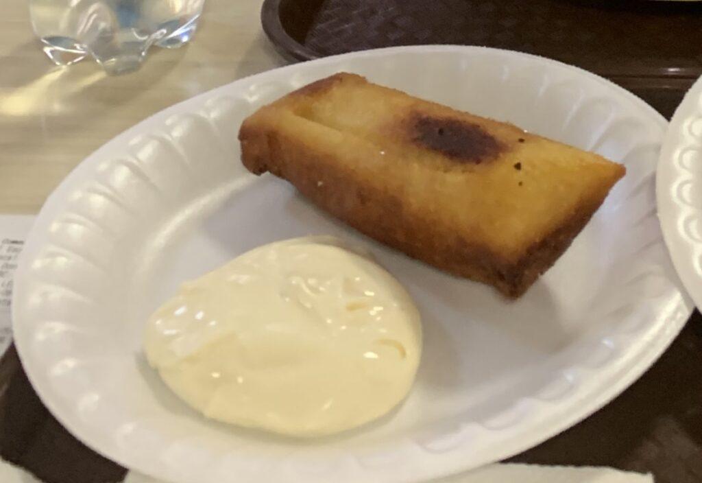 Fried sweet tamal with sweet cream
