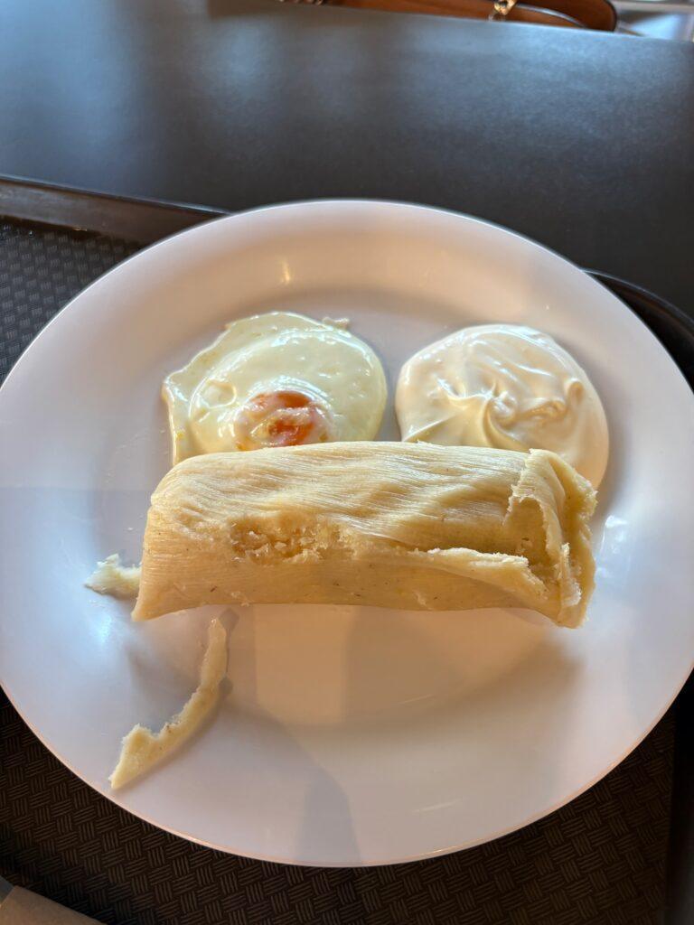 Boiled sweet tamal with egg and sweet cream