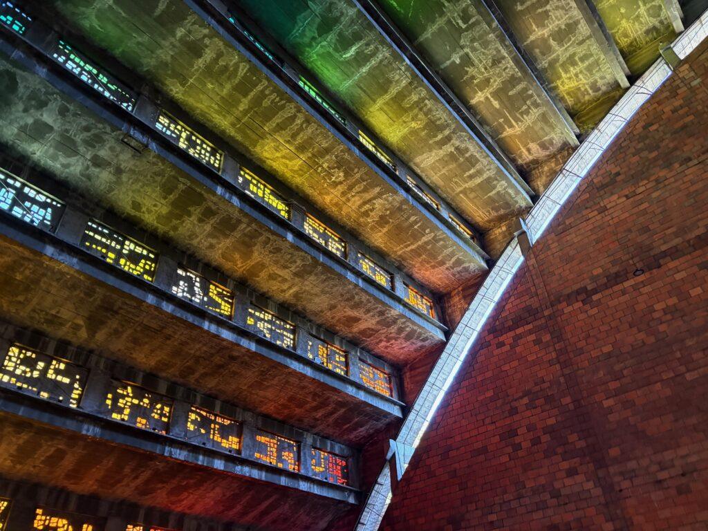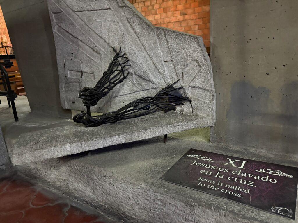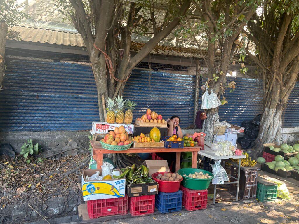 February has arrived and with it, I finally have my “Residencia Temporal”, which is my temporary resident visa. Now that I have it, I can begin charging for my English lessons, but I’m working on my web site first, and also trying to determine if there is anything I need to do with regard to Salvadoran taxes. Still, it’s exciting! I did learn that I if I am out of the country for more than 90 days (total, not necessarily continuous), then I lose the visa. At the end of the year, I can apply for a permanent resident visa (that would be the Salvadoran version of a green card). I think after that I can probably come and go as I wish. Until then I need to make sure I am aware of the total days I am out of El Salvador. About two weeks ago, my wife and I visited the Iglesia El Rosario (Church of the Rosary), which is both a church and a tourist site in the historic center of the capital. My mother and I visited the same church back in January 2025. It is not that special looking from the outside, but it is incredible on the inside. The stained glass ceiling is truly beautiful and definitely worth seeing if you visit El Salvador. Earlier that morning we also went to the Galerias mall and while there saw a display of artistic calendars from the Japanese Embassy. That evening, we were walking and I took a photo of a bus. Note that it’s a school bus from the US. There are a ton of repurposed school buses here, often painted with religious or other imagery and lit up. It’s important as a driver to remember that these are not actually school buses anymore and that you do not stop for them as you must for school buses in the US. The next day we took a road trip and drove south in the direction of San Miguel along the Carratera Panamericana (Pan American Highway). This highway stretches from the bottom of South America to Alaska. It was noticeably warmer towards San Miguel with highs in the mid-90s. Along the way I stopped to take a photo of a bridge destroyed by the communists in the civil war in the 1980s. Parts of the bridge are still there as you can see in the photo. Yesterday we visited Ilobasco. While there I took a quick photo of a woman carrying a basket on her head. Lots of women carry things on their heads here, but I was pretty impressed by this feat! I’ve also included a few other photos. One is of a woman selling fruit and talking on her cell phone. The fruit stands along the roads here are everywhere. Some sell fruit, while others sell coconut juice or sugar cane drinks. Another is of some farmers on the side of the road.